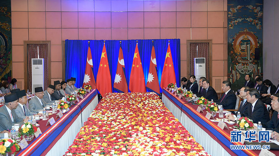 新華社加德滿都10月13日電(記者常愛玲 陳贄 孟娜)國家主席習(xí)近平13日在加德滿都同尼泊爾總理奧利會(huì)談。
