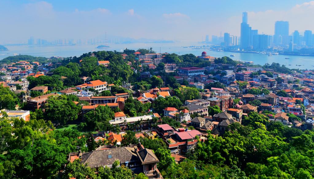 這是2017年7月11日在廈門(mén)鼓浪嶼日光巖上拍攝的鼓浪嶼景觀。新華社記者 魏培全 攝