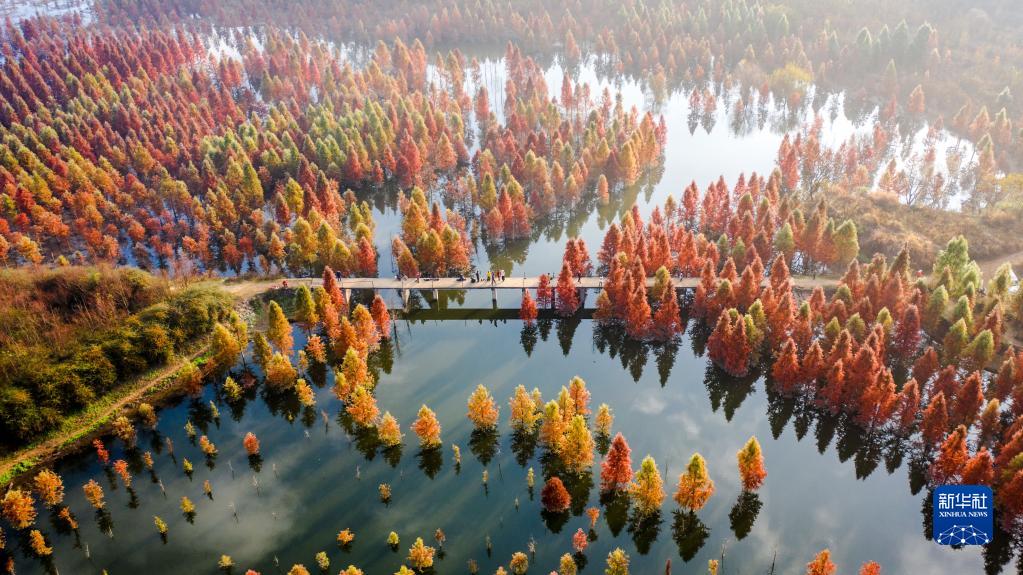2021年12月10日拍攝的云南省昆明市的甸尾村水杉濕地一景(無人機(jī)照片)。新華社記者 胡超 攝