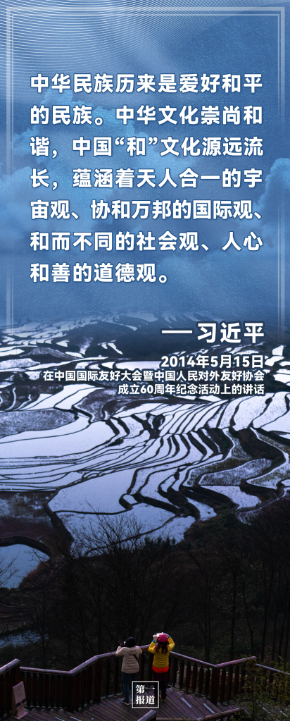 中國走和平發(fā)展道路,不是權(quán)宜之計,更不是外交辭令,而是從歷史、現(xiàn)實、未來的客觀判斷中得出的結(jié)論,是思想自信和實踐自覺的有機統(tǒng)一。進入新時代以來,習(xí)近平在多個場合,這樣闡述——