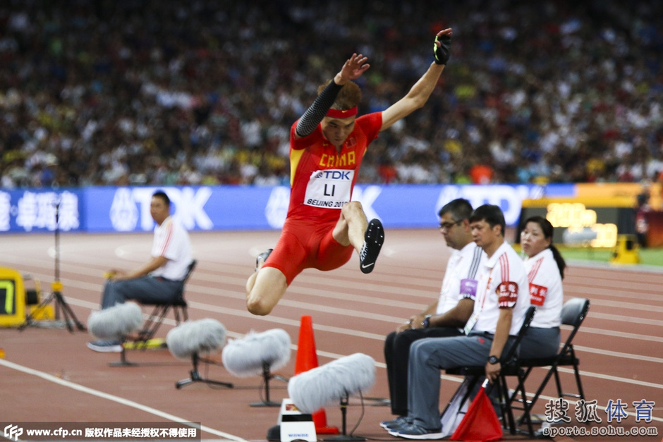三位中國選手中最先出場(chǎng)的王嘉男第一次試跳就跳出了8米14的不錯(cuò)成績,高興龍第一次試跳同樣發(fā)揮出色,也跳出了8米14的個(gè)人賽季最好成績,這個(gè)成績距離他自己的個(gè)人最好成績只差6厘米。李金哲的第一跳在助跑到后段時(shí)明顯猶豫,結(jié)果僅跳出7米69的成績。