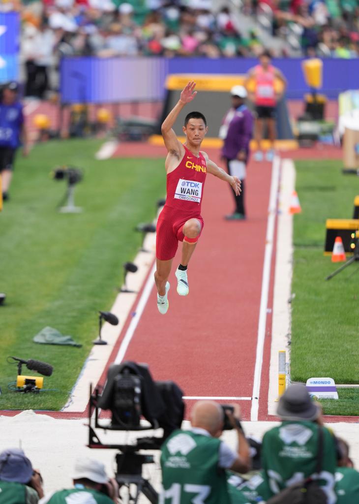 王嘉男在本屆世錦賽上的最后一跳表現(xiàn)驚艷全場(chǎng)。雖然此前他的最好成績只有8米03,落后于希臘選手、東京奧運(yùn)會(huì)冠軍滕托格洛的8米32。但最后一跳,他放手一搏并完成了8米36的驚世一跳。
