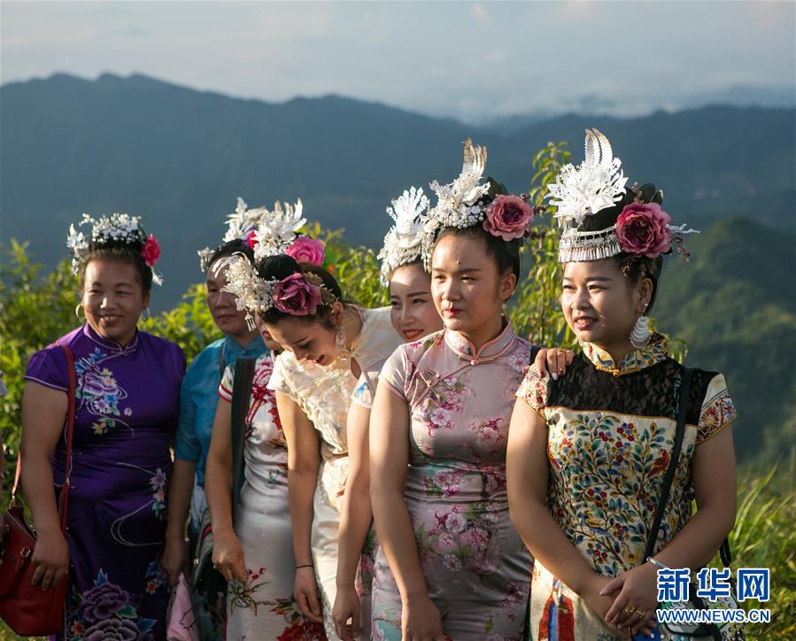 8月4日,苗族婦女在劍河縣岑松鎮(zhèn)巫門村參加“祈雨節(jié)”活動。新華社記者 李京 攝