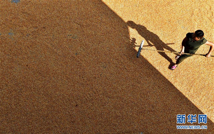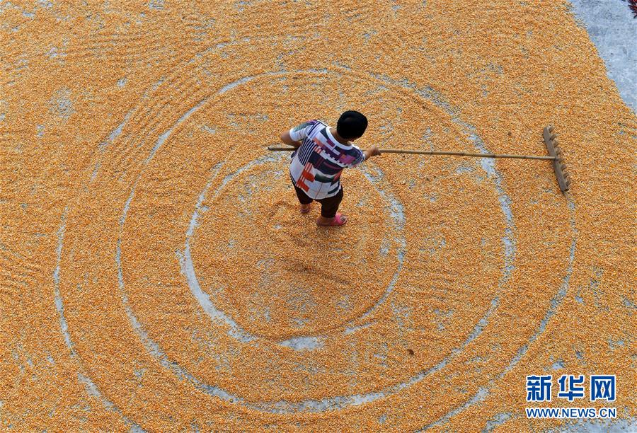 8月26日,貴州省遵義市鳳岡縣新建鎮(zhèn)太河村村民在晾曬玉米。 新華社發(fā)(羅星漢 攝)
