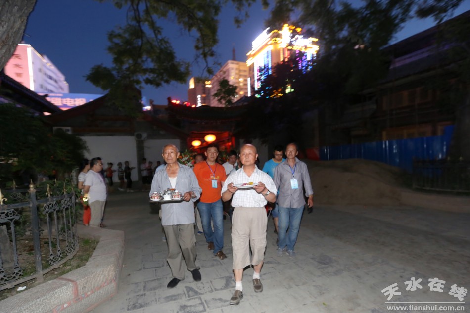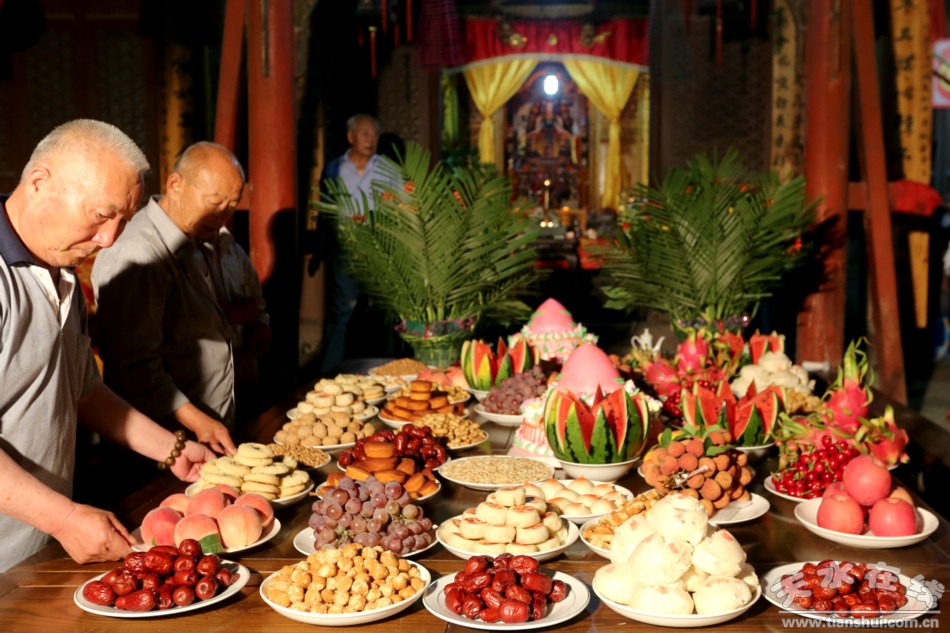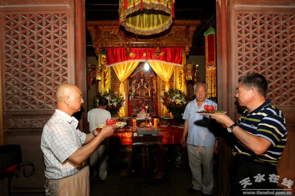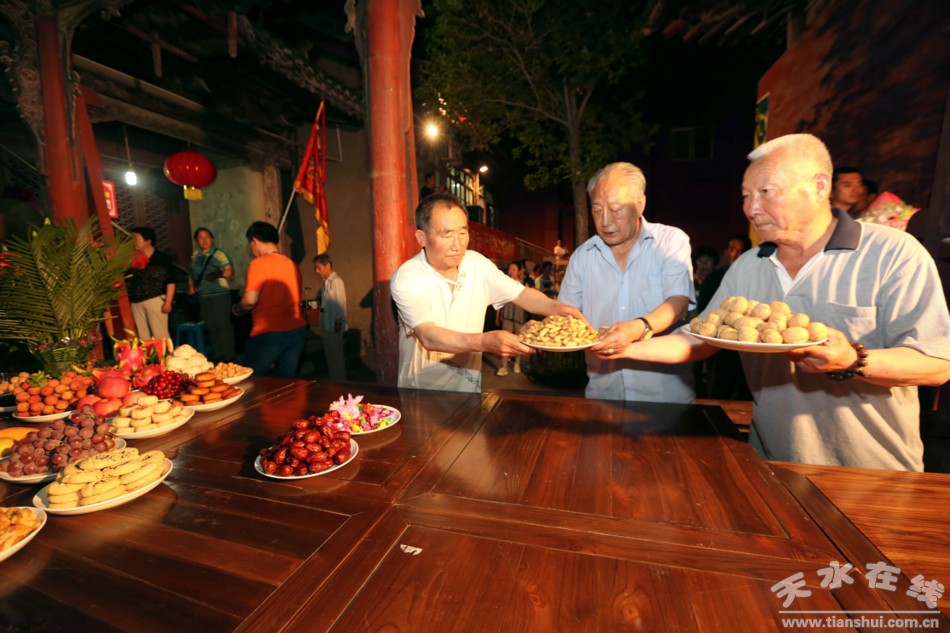 丙申年五月十八日(公元2016年6月22日)零時(shí),天水城隍祭祀典禮在紀(jì)信祠(天水文化館)內(nèi)隆重舉行。傳說(shuō),紀(jì)信將軍出生于農(nóng)歷五月十八日,所以這一天就是紀(jì)信將軍的誕辰紀(jì)念廟會(huì),廟會(huì)期間,城隍廟里人山人海,晝夜燈火通明,廟會(huì)前后共持續(xù)3天。