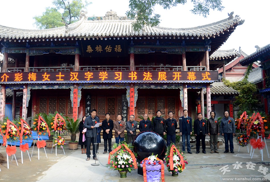 11月3日,介彩梅女士漢字學(xué)習(xí)書法展在天水市文化館開展。