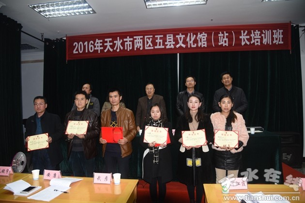 下午3點,舉行了2016年天水市兩區(qū)五縣文化館(站)長培訓班結(jié)業(yè)典禮。市文化館館長李靖介紹了本次培訓班的基本情況和舉辦初衷,兩區(qū)五縣文化館長及代表交流了各縣區(qū)人員隊伍、群文活動以及培訓感受。劉鴻女士、尚建強先生以及市文化館領(lǐng)導班子分別為大家頒發(fā)了結(jié)業(yè)證書。