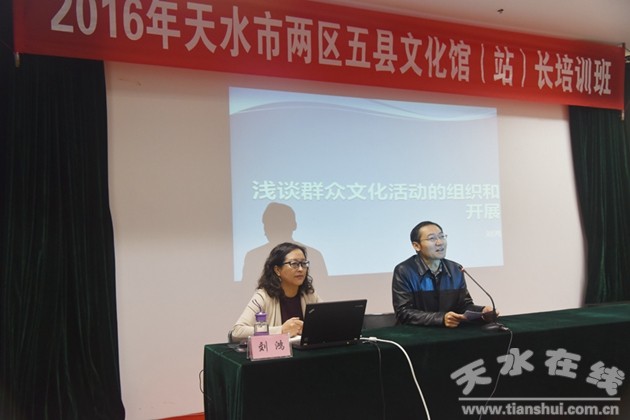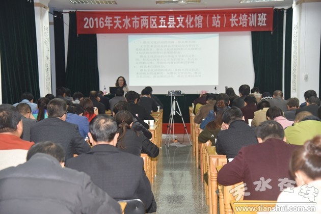 11月17日,由天水市文化和旅游局指導、天水市文化館主辦的“2016年天水市兩區(qū)五縣文化館長及文化站長培訓在金龍大酒店4樓會議室繼續(xù)舉行,市文化館特別邀請到甘肅省文化館調(diào)研編輯部主任劉鴻女士,她主講了《群眾文化活動的組織與開展,鄉(xiāng)鎮(zhèn)文化專干的素質(zhì)漫談》的公共文化講座,各縣區(qū)文化館館長、鄉(xiāng)鎮(zhèn)文化站站長、鄉(xiāng)鎮(zhèn)文化專干近120余人聆聽講座。