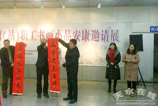 2016年12月29日,天水市五縣兩區(qū)文化館(站)職工書畫小品邀請展開幕式在安康市群眾藝術(shù)館舉行。安康市文化文物廣電局副局長周傳恩,安康市群藝館館長周墻,陜西省書協(xié)副主席、安康市書協(xié)主席馬昌騏,天水市文化館副館長曹文成,安康市群藝館全體職工,以及來自遠近兄弟單位的文藝人員近200余人出席了開幕式。
