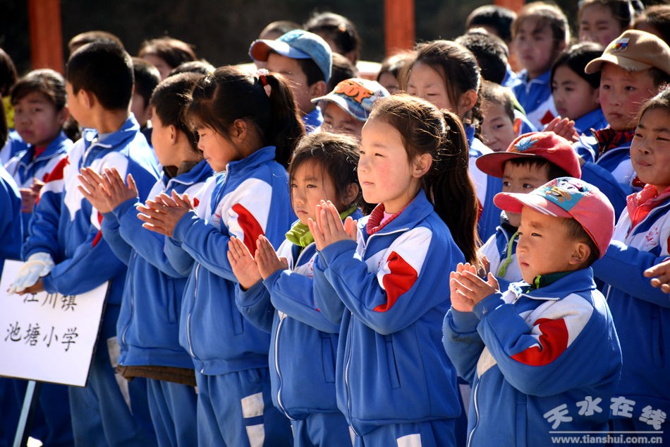 蘇城地處天水市秦州區(qū)最偏遠(yuǎn)的南端,屬于秦州區(qū)汪川鎮(zhèn)管轄,由于四處環(huán)山、交通閉塞等原因,當(dāng)?shù)卮蠖鄶?shù)群眾生活依然比較貧困。十一月的天氣已經(jīng)很冷了,當(dāng)筆者穿著厚厚的棉衣站在池塘小學(xué)的操場(chǎng)上都禁不住瑟瑟發(fā)抖,何況是那些衣著很是單薄的孩子們,讓人見(jiàn)了不禁心生憐惜,天水市文化館文化志愿者的愛(ài)心捐增可謂真正的雪中送炭。