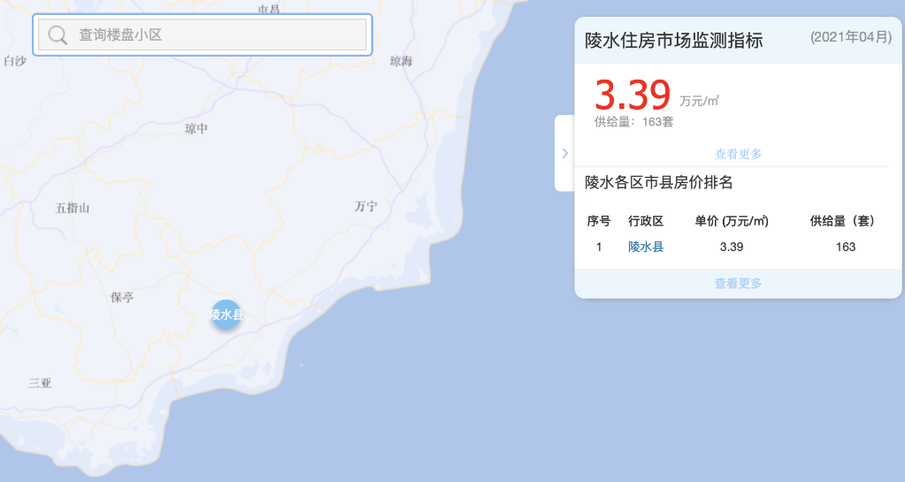 有的甚至更高。根據(jù)海南省統(tǒng)計(jì)部門數(shù)據(jù),今年一季度,海南省陵水黎族自治縣新建商品住宅銷售均價(jià)每平方米29343元,同比下降2.3%,但價(jià)格仍然領(lǐng)先其他縣城。比如,香水灣一季度銷售12套,大都偏別墅類,均價(jià)超過每平方米3萬元,其中的富力灣項(xiàng)目均價(jià)超4萬元,陵水縣另一個(gè)灣區(qū)清水灣均價(jià)25000元。