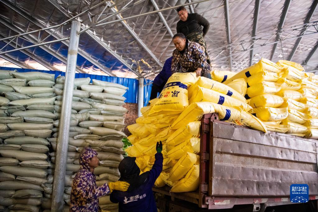 2月3日,工作人員在湖南省永州市祁陽市黎家坪鎮(zhèn)供銷惠農(nóng)服務(wù)中心化肥儲備庫卸貨。 新華社記者 陳思汗 攝