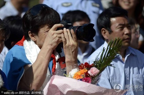現(xiàn)場人很多,群眾們大都沖成龍而來。當(dāng)成龍一現(xiàn)身,警察忙把其攙扶保護。而成龍在臺下則頻舉單反相機,化身攝影師。