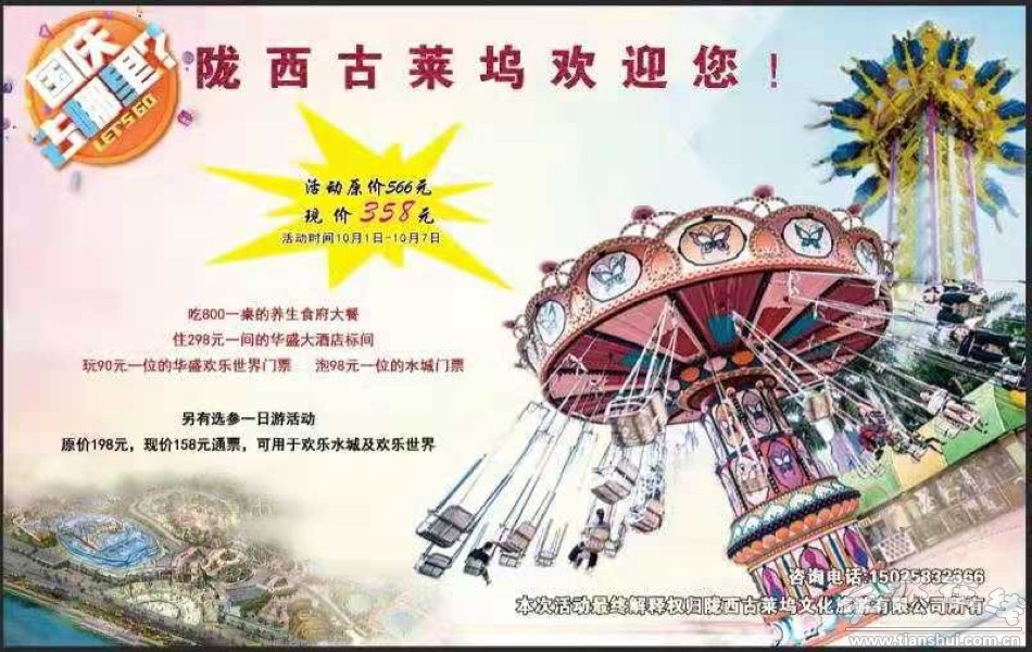 另有國(guó)慶特價(jià)158元古萊塢通票,可暢玩古萊塢歡樂(lè)世界及夢(mèng)幻水城!