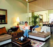 客廳里這面金邊的美麗鏡子,是“陳節(jié)風格”的典型代表,金色提亮空間,鏡面的反射讓空間看起來更大、內(nèi)容更豐富。