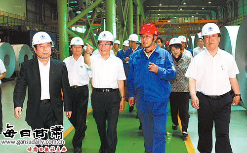 面對(duì)國(guó)際金融危機(jī)沖擊,甘肅企業(yè)的發(fā)展?fàn)顩r怎樣、采取了哪些應(yīng)對(duì)措施、成效如何?這是賀國(guó)強(qiáng)十分關(guān)心的問(wèn)題。8日上午,賀國(guó)強(qiáng)風(fēng)塵仆仆地趕往嘉峪關(guān)市,深入酒泉鋼鐵(集團(tuán))公司考察。
