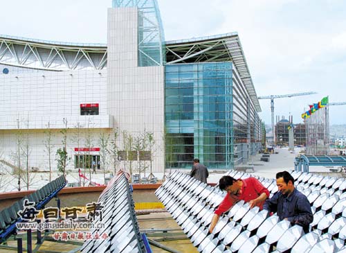 6月3日,參加甘肅展覽中心亮化、綠化工程施工的工作人員正在進(jìn)行最后的掃尾工作。該展覽中心主體高度30.2米,建筑面積6.3652萬平方米,建設(shè)有國際標(biāo)準(zhǔn)展位1200個,室外展場1萬平方米。據(jù)悉,第16屆蘭洽會在這里布展的時間為6月25日至7月5日。本報(bào)記者 呂亞龍 攝
