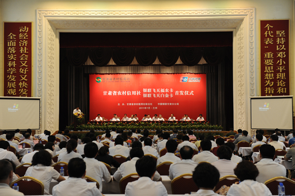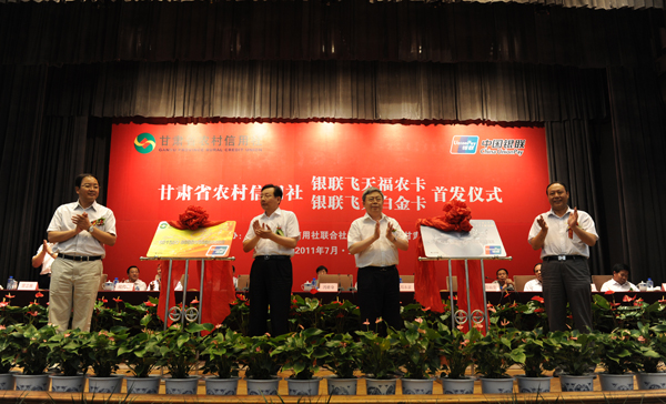 。ㄊ≌䥇f(xié)主席馮健身,省委常委、常務(wù)副省長劉永富,省政協(xié)副主席張世珍,省委副秘書長、辦公廳主任陳田貴等領(lǐng)導(dǎo)為“飛天福農(nóng)卡”、“飛天白金卡”揭卡。配圖:天水在線)
