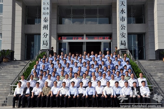 (孟建柱在天水市公安局調(diào)研時,與公安干警合影留念)
