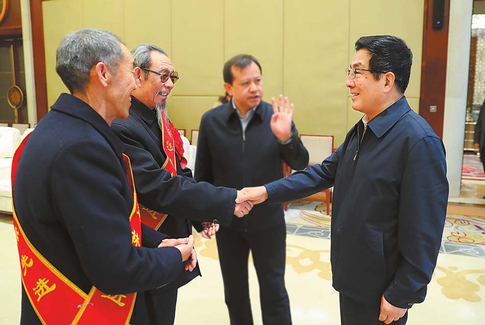 12月28日,省委書記、省人大常委會主任林鐸在蘭州接見了古浪縣八步沙林場“六老漢”三代人治沙造林先進集體代表。本報記者 高檣