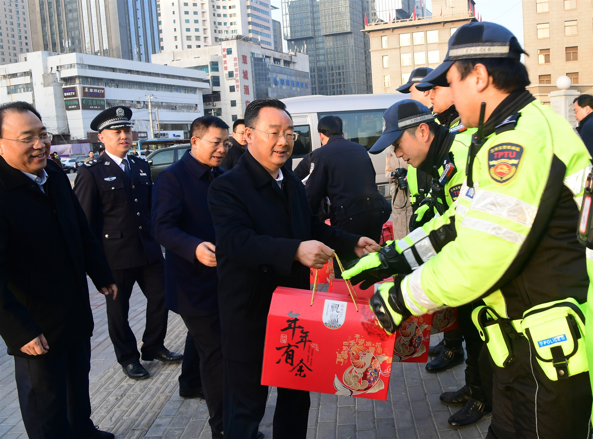 張掖路菜市場,雞鴨魚肉應有盡有,各色果蔬新鮮喜人,市民們正在精心選購。唐仁健詢問了解價格、供應及檢驗檢疫等情況。他說,新春佳節(jié)、闔家團圓,餐桌是年味的重心,務必加倍用心。要暢通渠道保證供應,內(nèi)外結(jié)合穩(wěn)住價格,守住關口把牢質(zhì)量,確保群眾吃得上、吃得好、吃得安全,過一個稱心如意的新年。在蘭州飯店門前小廣場,唐仁健與執(zhí)勤交警一一握手,向大家及家人拜年。他說,正像習近平總書記所說的,大家平時“風里來、雨里去,戰(zhàn)嚴寒、斗酷暑,‘白加黑’‘五加二’”,我代表全省人民感謝你們,希望大家注意安全、保重身體,為保安全、保民生、保穩(wěn)定再立新功。在省人民醫(yī)院,唐仁健看望慰問一線醫(yī)務人員,并通過遠程會診網(wǎng)絡向全省醫(yī)務工作者拜年。他說,過去一年,我們“過得很充實,走得很堅定”,取得了來之不易的成績,這其中有你們的辛勤付出。你們是白衣天使、生命守護神,你們的每個表情、每個眼神都是患者最好的安慰劑、定心丸,希望大家繼續(xù)用心用情做好醫(yī)療衛(wèi)生服務工作。