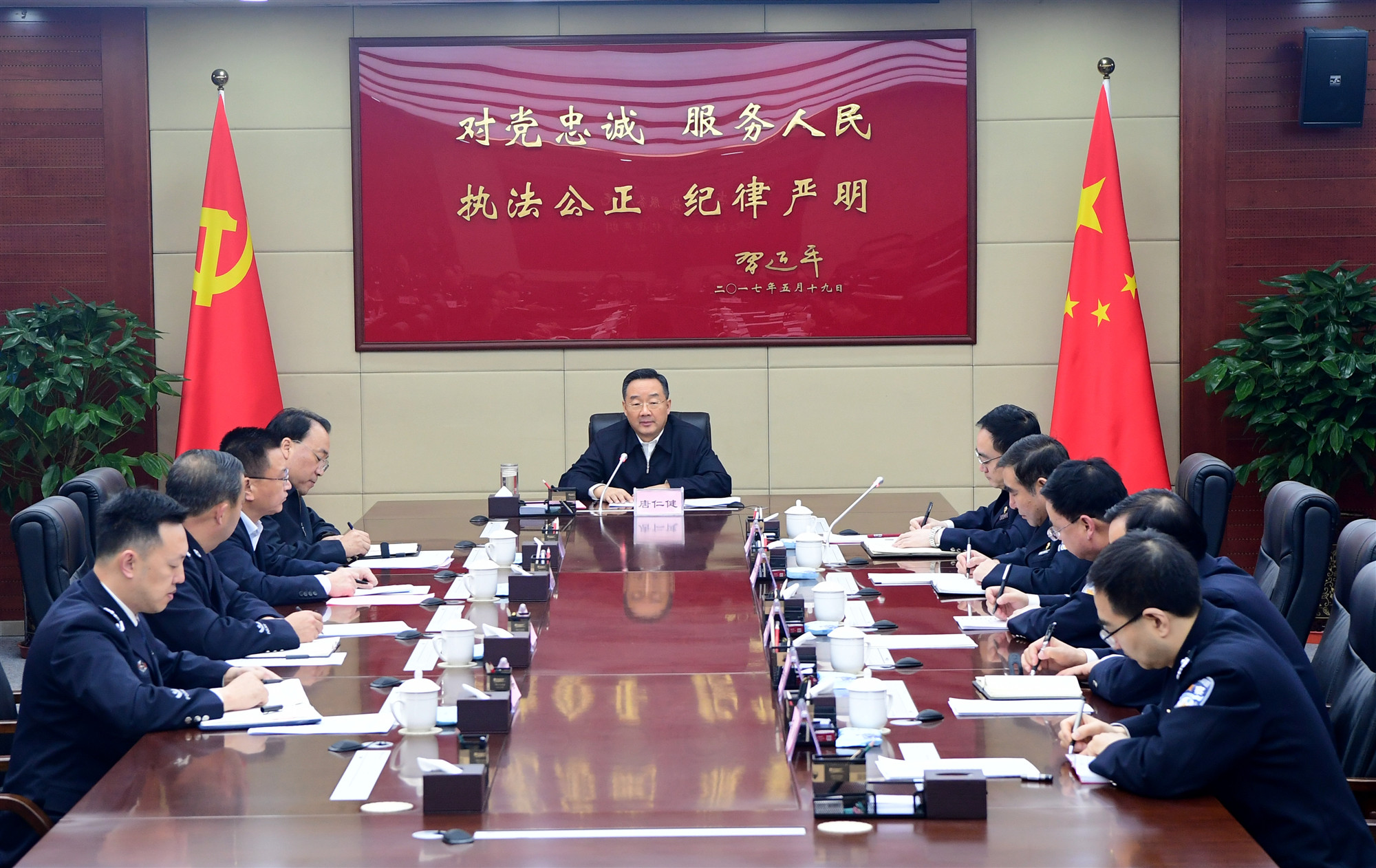 最后,唐仁健來到省公安廳,看望值班民警,觀看工作總結(jié)視頻片,召開座談會聽取有關情況匯報。他說,公安戰(zhàn)線使命光榮、責任重大。過去一年,全省公安系統(tǒng)圍繞中心服務大局,護航經(jīng)濟社會發(fā)展,做了大量艱苦卓絕的工作。今年是新中國成立70周年,是喜慶之年、大慶之年,各項改革發(fā)展任務極其繁重、極為艱巨。全省公安系統(tǒng)要牢記總書記囑托,樹牢底線思維、堅持問題導向,不松勁、不懈怠,始終沖在防范化解重大風險的最前線,切實做好安全維穩(wěn)各項工作,不辜負黨和人民的期望和重托。唐仁健叮囑說,和平時期最辛苦最勞累、付出犧牲最多的是公安干警,要多給予他們關心關愛,讓他們工作生活得更加舒心、更有保障。