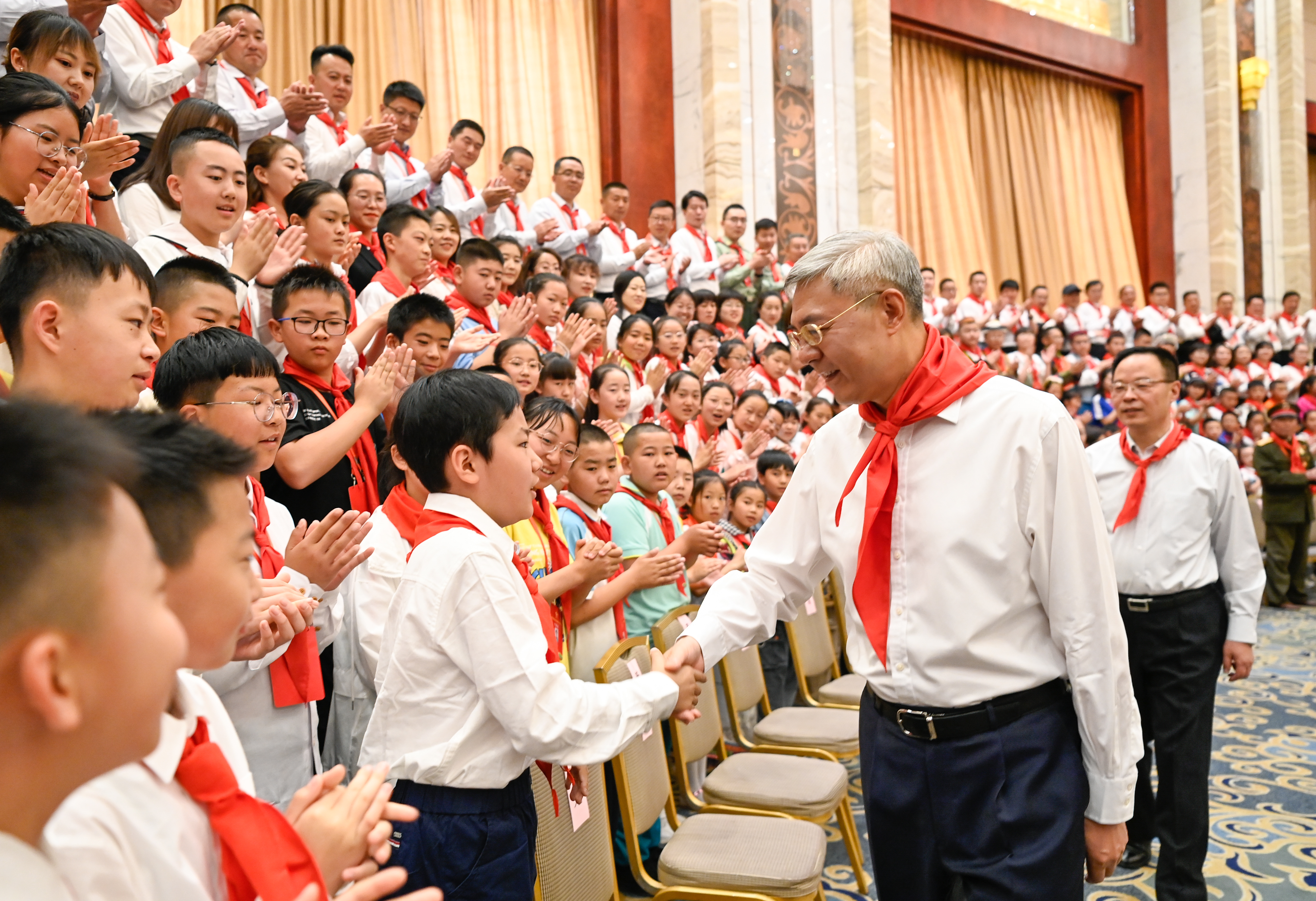 9時(shí)許,尹弘走進(jìn)會(huì)場(chǎng),與孩子們歡度節(jié)日。少先隊(duì)員為尹弘戴上鮮艷的紅領(lǐng)巾,敬少先隊(duì)隊(duì)禮。尹弘同代表們親切握手、合影留念。深情寄語(yǔ)少年兒童,要牢記習(xí)近平總書(shū)記的殷切囑托,熱愛(ài)黨、熱愛(ài)祖國(guó)、熱愛(ài)人民,堅(jiān)定理想信念,學(xué)好文化知識(shí),磨礪品格意志,爭(zhēng)做理想遠(yuǎn)大、勤奮學(xué)習(xí)、品德高尚、體魄強(qiáng)健的好少年,努力成為德智體美勞全面發(fā)展的社會(huì)主義建設(shè)者和接班人。