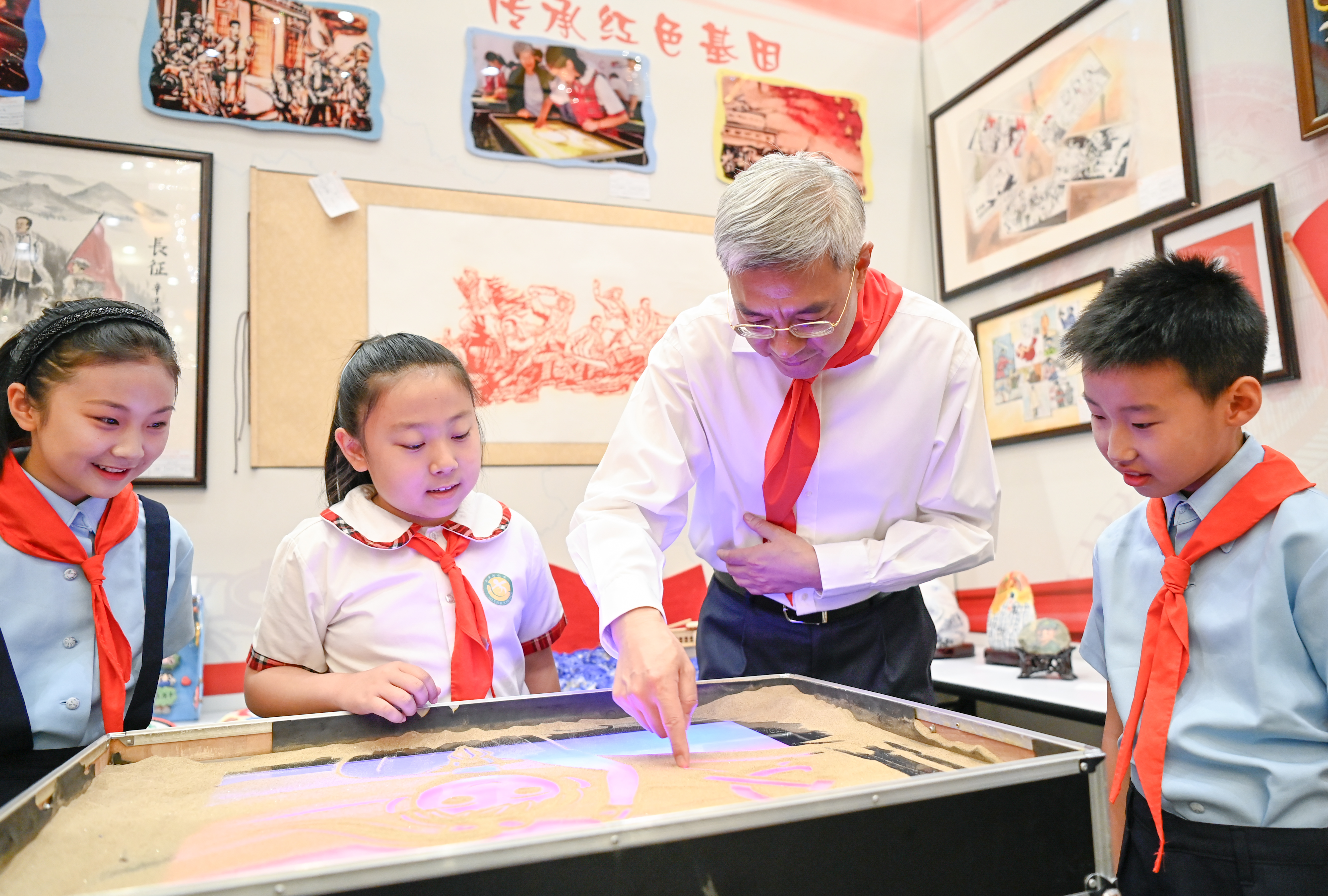 尹弘還參觀了“紅領(lǐng)巾心向黨慶祝建黨100年”全省少先隊(duì)員優(yōu)秀作品展。