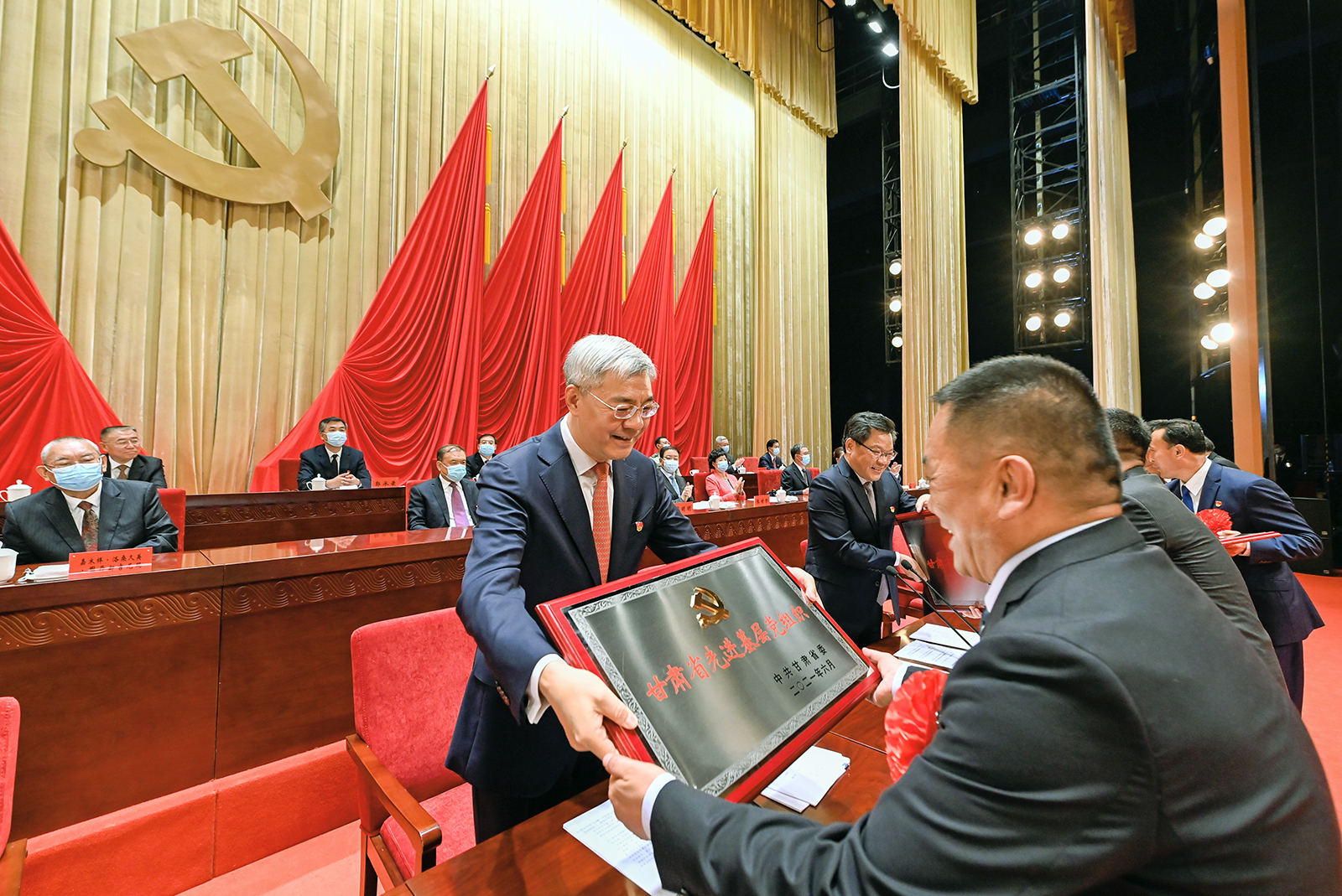 省委副書記孫偉宣讀《中共甘肅省委關(guān)于表彰甘肅省優(yōu)秀共產(chǎn)黨員、優(yōu)秀黨務(wù)工作者和先進(jìn)基層黨組織的決定》。