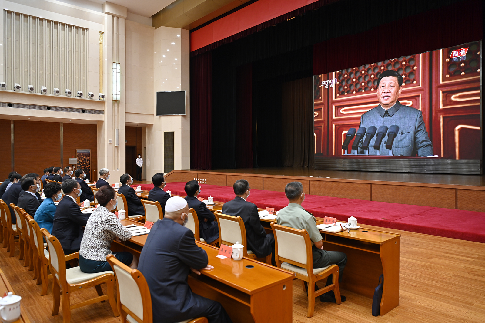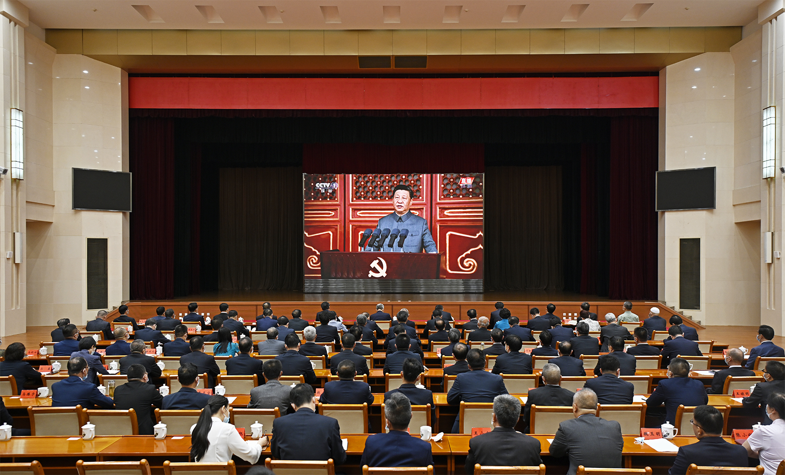 尹弘、任振鶴、歐陽堅、孫偉、馬廷禮、劉昌林、胡焯、李元平、王嘉毅、石謀軍、蒲永能、朱天舒,嘉木樣·洛桑久美·圖丹卻吉尼瑪、馬青林、陳克恭、吳明明,張世珍、李沛興、何偉、余建、程曉波、劉長根、張錦剛,陳青、德哇倉、馬文云、王銳、郭承錄、康國璽、尚勛武、贠建民、郭天康、霍衛(wèi)平、袁占亭,張海波、朱玉,馬小潔,以及李德新、李志勛、王建太參加收看。