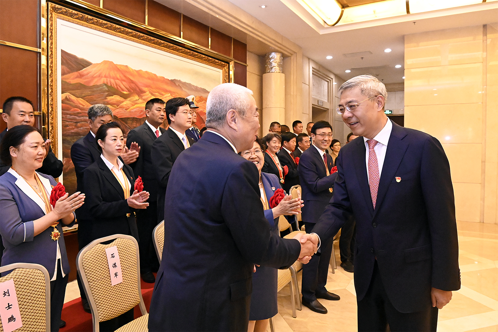 7月5日,省委書記、省人大常委會主任尹弘在蘭州會見了我省全國“兩優(yōu)一先”表彰對象和全國優(yōu)秀縣委書記,同大家座談并合影留念。 新甘肅·甘肅日報記者 孟捷