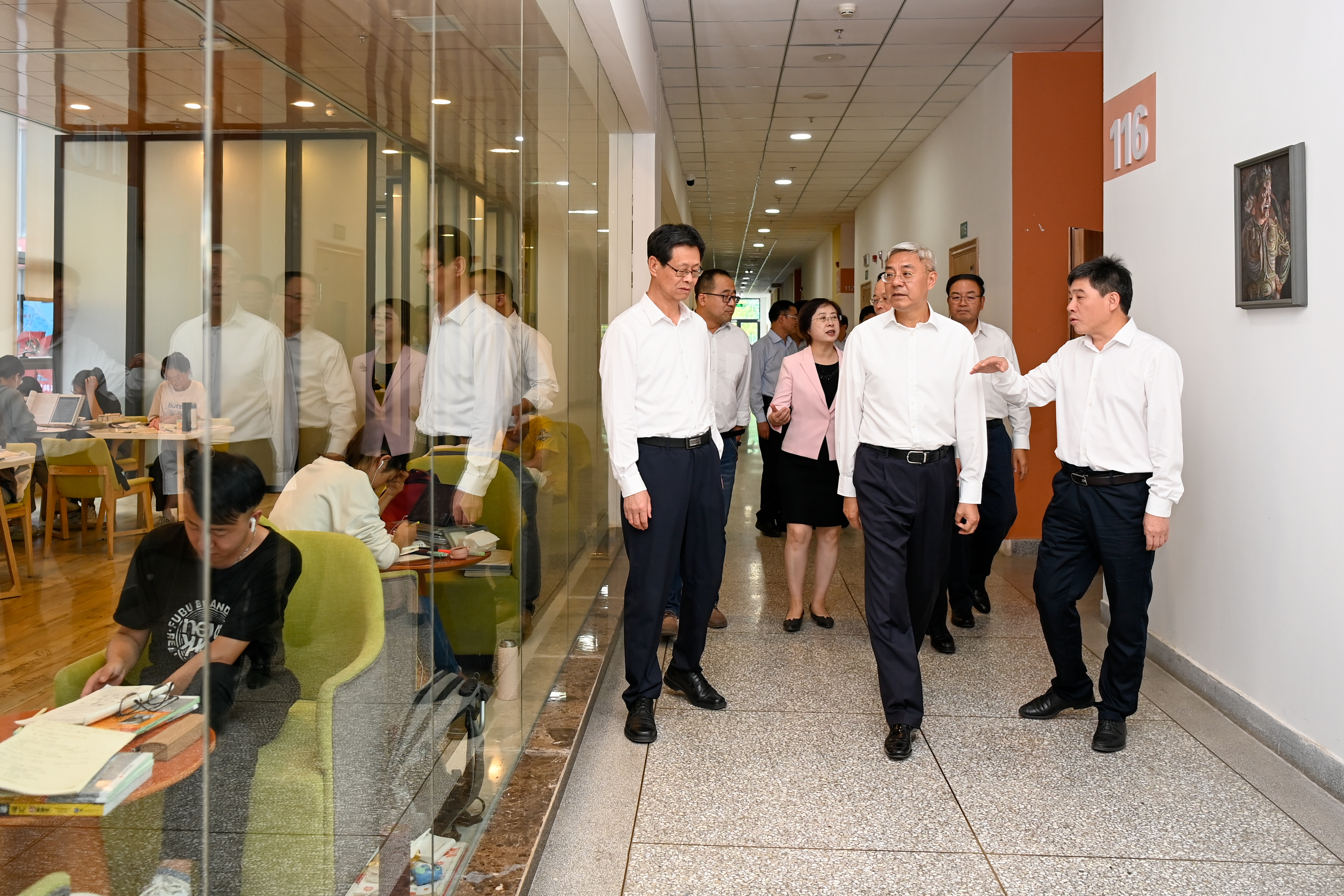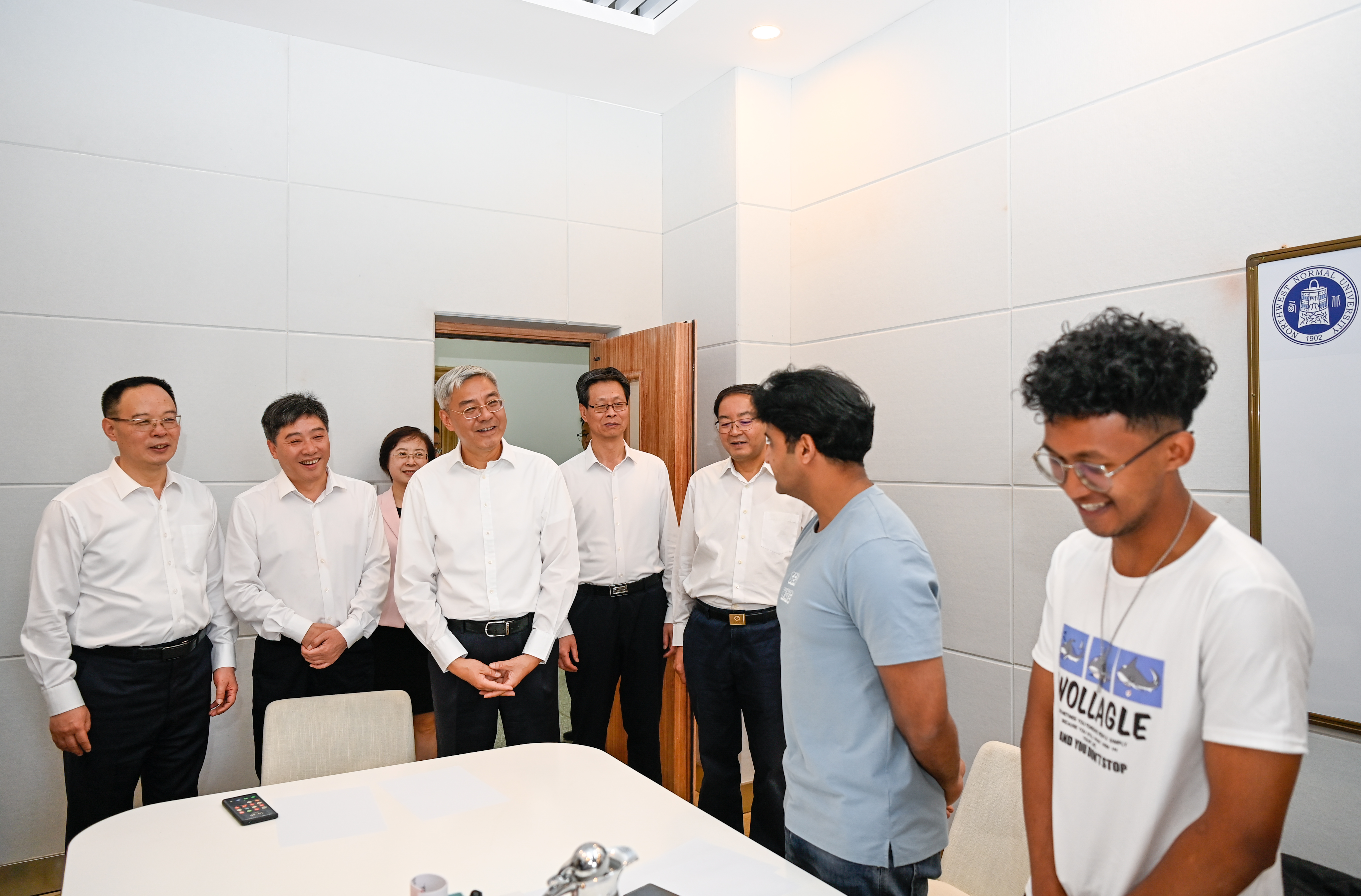 尹弘強(qiáng)調(diào),高校肩負(fù)著培養(yǎng)社會主義事業(yè)建設(shè)者和接班人的重要使命,要落實(shí)立德樹人根本任務(wù),把思想政治理論課建設(shè)擺上重要議程,堅(jiān)持用習(xí)近平新時代中國特色社會主義思想這一黨的理論創(chuàng)新最新成果、當(dāng)代中國馬克思主義、21世紀(jì)馬克思主義培根鑄魂,努力培養(yǎng)擔(dān)當(dāng)民族復(fù)興大任的時代新人。要緊扣國家戰(zhàn)略需求和地方發(fā)展需要,突出自身優(yōu)勢,主動擔(dān)當(dāng)作為,在科研協(xié)同攻關(guān)、科技成果轉(zhuǎn)化、創(chuàng)新人才培養(yǎng)、均衡教育資源配置等方面下足功夫,有效提升服務(wù)經(jīng)濟(jì)社會發(fā)展的能力。要切實(shí)加強(qiáng)黨對高校工作的領(lǐng)導(dǎo),抓好基層黨組織建設(shè),使黨的領(lǐng)導(dǎo)覆蓋辦學(xué)治校各領(lǐng)域、貫穿教育教學(xué)各環(huán)節(jié)、融入人才培養(yǎng)各方面,確保黨的教育方針得到全面貫徹。要牢牢守住校園安全底線,認(rèn)真做好常態(tài)化疫情防控工作,營造安全穩(wěn)定的校園環(huán)境。