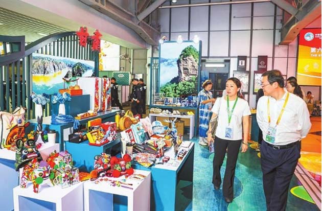 為更好推動(dòng)優(yōu)秀傳統(tǒng)文化創(chuàng)造性轉(zhuǎn)化、創(chuàng)新性發(fā)展,全面展示甘肅省非遺、文創(chuàng)最新成果,推動(dòng)文旅貿(mào)深度融合,我省以“交響絲路·如意甘肅”為主題,在進(jìn)博會(huì)人文交流展區(qū)搭建甘肅省展區(qū),展示蘭州黃河鐵橋、天水麥積山、平?jīng)鲠轻忌、九色甘南扎尕那、張掖七彩丹霞、嘉峪關(guān)關(guān)城、隴南官鵝溝等甘肅省熱門(mén)景區(qū)圖片,全方位立體式向與會(huì)嘉賓展示甘肅厚重的文化底蘊(yùn)和豐富的旅游資源。