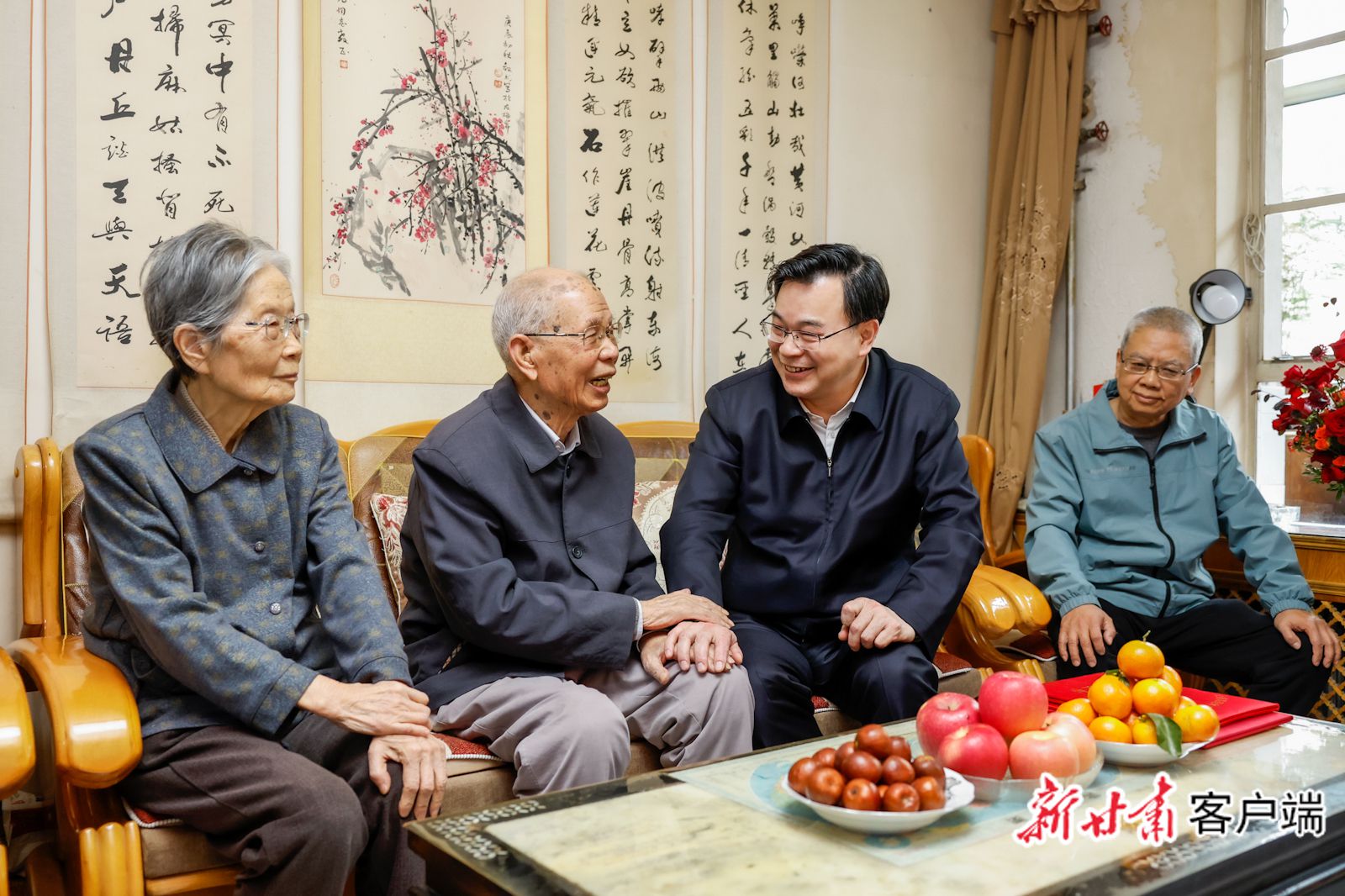 胡昌升先后來到83歲的李廷群老人、94歲的張普光老人和84歲的劉國安老人家中,與他們熱情交談,關(guān)切詢問他們的日常生活、健康狀況和家庭情況,感謝他們?yōu)辄h和人民事業(yè)作出的貢獻(xiàn),認(rèn)真聽取他們的意見建議,祝愿他們身體健康、晚年幸福。他說,老年人是全社會的寶貴財(cái)富,曾經(jīng)在各自崗位上辛勤耕耘、拼搏奉獻(xiàn),為全省經(jīng)濟(jì)社會發(fā)展付出了心血和汗水,現(xiàn)在仍然用自己的智慧和經(jīng)驗(yàn)為群眾服務(wù)、為發(fā)展助力。我們要在政治上關(guān)心、生活上關(guān)照,盡心盡力為老年人辦實(shí)事、解難題,切實(shí)把全省老年人照顧好、服務(wù)好,讓他們共享高質(zhì)量發(fā)展成果、安享幸福晚年。同時(shí),希望廣大老年人始終不忘初心,堅(jiān)持老有所為,繼續(xù)發(fā)光發(fā)熱,為甘肅現(xiàn)代化建設(shè)獻(xiàn)計(jì)出力、再作貢獻(xiàn)。