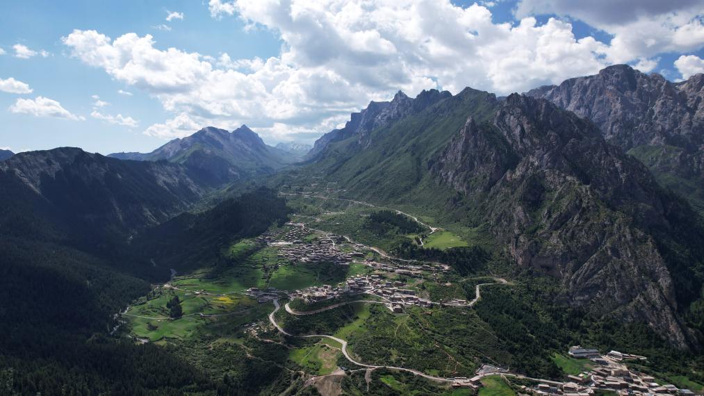 夏日里的扎尕那景色(7月11日攝,無人機(jī)照片)。新華社記者 陳斌 攝