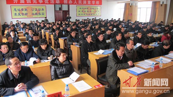 12月24日,全市教育系統(tǒng)創(chuàng)辦“人民滿意學(xué)!濒邉(chuàng)先爭(zhēng)優(yōu)活動(dòng)推進(jìn)會(huì)在甘谷召開(kāi)。會(huì)議總結(jié)交流創(chuàng)先爭(zhēng)優(yōu)活動(dòng)開(kāi)展情況,宣傳推廣甘谷三中教育教學(xué)工作做法和經(jīng)驗(yàn),安排部署全市教育系統(tǒng)創(chuàng)辦“人民滿意學(xué)!被顒(dòng)。