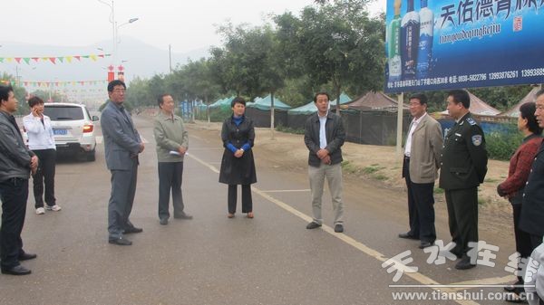 為迎接省級精神文明工作先進(jìn)縣驗收和給廣大群眾創(chuàng)造舒適優(yōu)美的城市環(huán)境。9月20日,甘谷縣委常委、常務(wù)副縣長李尚平帶,縣委常委、宣傳部長董珺,縣政協(xié)副主席蔣曉琴等領(lǐng)導(dǎo)帶領(lǐng)縣公安局、交警隊、住建局、交通局、執(zhí)法局、工商局、市建中心,大像山鎮(zhèn)及新興鎮(zhèn)等有關(guān)鄉(xiāng)鎮(zhèn)、單位負(fù)責(zé)人,檢查指導(dǎo)城區(qū)環(huán)境衛(wèi)生秩序整治工作。