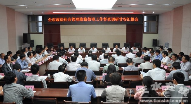 7月9日,天水市委常委、政法委書記趙衛(wèi)東帶領(lǐng)市政法、綜治、維穩(wěn)等單位負責同志,深入甘谷縣部分鄉(xiāng)鎮(zhèn)、街道、村組、社區(qū)和基層政法部門,就政法社會管理維穩(wěn)禁毒工作進行了督查調(diào)研。甘谷縣委書記賈忠慧,縣委副書記、縣長申君明,縣委常委、副縣長邵宏偉,縣委常委、政法委書記馬驥,縣人大常委會副主任魏慶英,縣政協(xié)副主席王金生陪同調(diào)研。