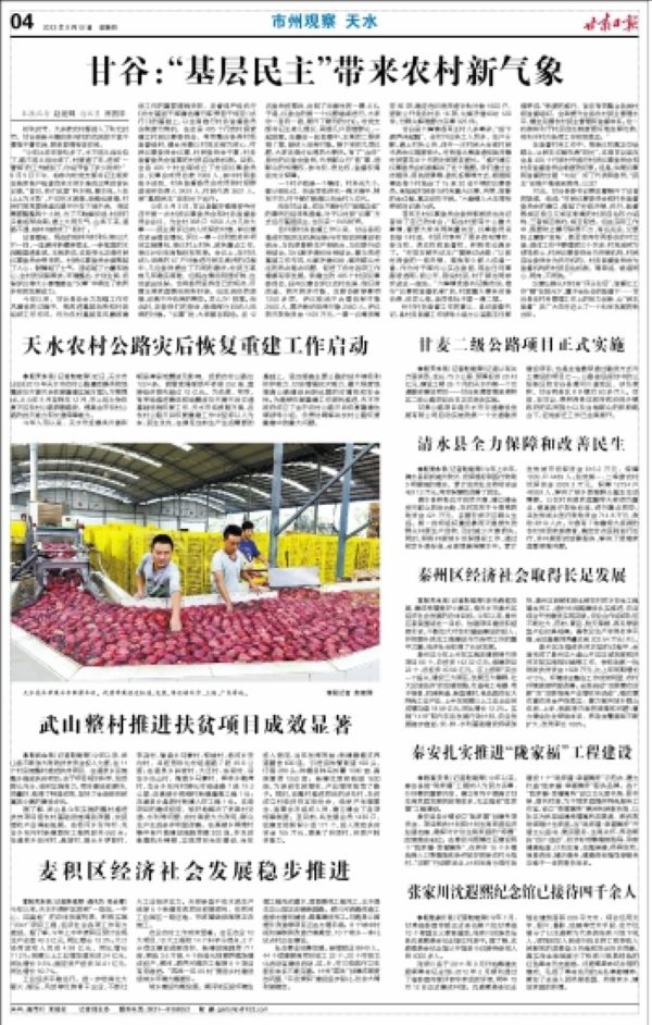 議事讓群眾對村務(wù)“評頭論足”,監(jiān)督讓工作“曬”在陽光下,置于全社會(huì)的監(jiān)督下……甘谷縣在村務(wù)管理工作上的有力創(chuàng)新,讓“民主監(jiān)督”在廣大農(nóng)村邁上了一個(gè)科學(xué)發(fā)展的新臺階。
