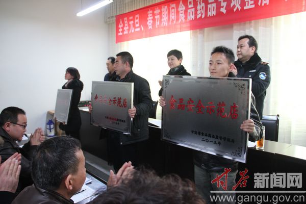 會議宣讀了《元旦春節(jié)期間食品藥品安全專項整治“利劍”行動實施方案》,并為獲得省級“食品安全示范店”的8戶食品經(jīng)營門店頒發(fā)了榮譽證。