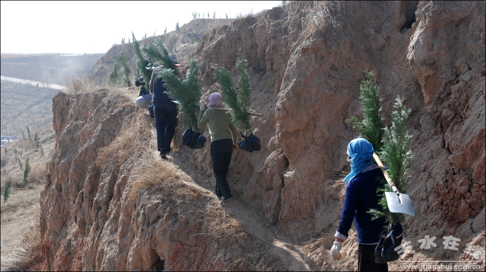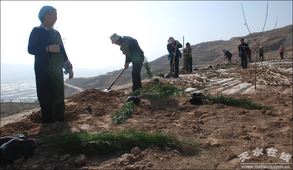 連日來(lái),甘谷縣謝家灣大道坡流域,人們忙著栽植樹苗。