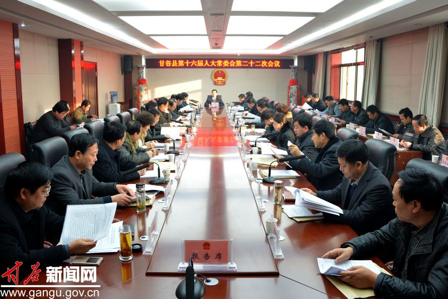 12月30日,甘谷縣人大常委會(huì)主任令建民主持召開(kāi)縣第十六屆人大常委會(huì)第二十二次會(huì)議,縣人大常委會(huì)副主任韓金鼎、謝興明、王百家、劉仰賢、劉永仁及各位委員參加會(huì)議。縣委常委、副縣長(zhǎng)邵宏偉,縣人民法院院長(zhǎng),縣人民檢察院檢察長(zhǎng),縣委組織部、縣政府辦、發(fā)改、教體、公安、監(jiān)察、民政、財(cái)政、人社、國(guó)土、環(huán)保、建設(shè)、交運(yùn)、水務(wù)、農(nóng)業(yè)、林業(yè)、衛(wèi)計(jì)、審計(jì)、食藥監(jiān)、扶貧辦、地震、供銷(xiāo)、畜牧、果業(yè)等部門(mén)主要負(fù)責(zé)人及縣人大常委會(huì)辦公室、各工作委員會(huì)副主任,大石鄉(xiāng)、武家河鄉(xiāng)人大主席列席會(huì)議。