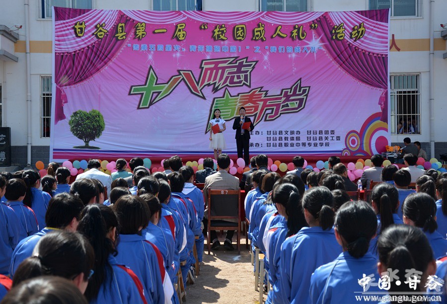 據(jù)了解,甘谷縣舉辦第一屆“校園成人禮”活動(dòng),意在引導(dǎo)廣大中學(xué)生繼承和弘揚(yáng)五四運(yùn)動(dòng)“愛(ài)國(guó)、進(jìn)步、民主、科學(xué)”的偉大精神和中華民族的傳統(tǒng)美德,踐行社會(huì)主義核心價(jià)值觀,激勵(lì)青年學(xué)子樹(shù)立奮發(fā)學(xué)習(xí)、成才報(bào)國(guó)的遠(yuǎn)大志向。