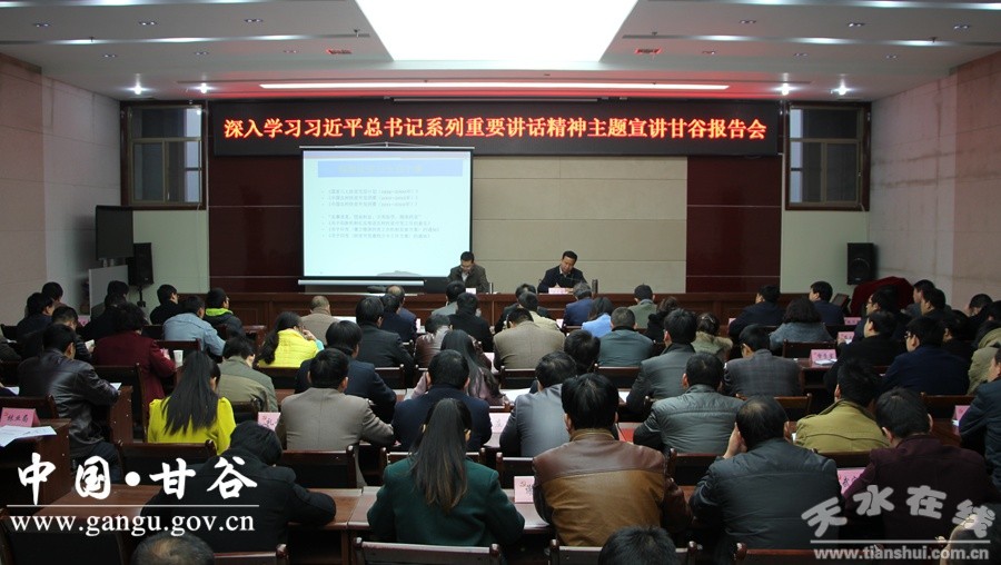 11月11日,甘肅省委宣講團“精準扶貧與實現(xiàn)全面小康”主題宣講報告會在甘谷縣舉行,省社科院農村發(fā)展研究所所長、研究員王建兵博士作專題輔導。甘谷縣四大組織分管精準扶貧工作領導、各鄉(xiāng)鎮(zhèn)分管領導、扶貧專干、相關單位有關負責人及縣精準扶貧指揮部全體干部共計100余人聆聽了報告會。縣委常委、宣傳部長張慶元主持報告會。