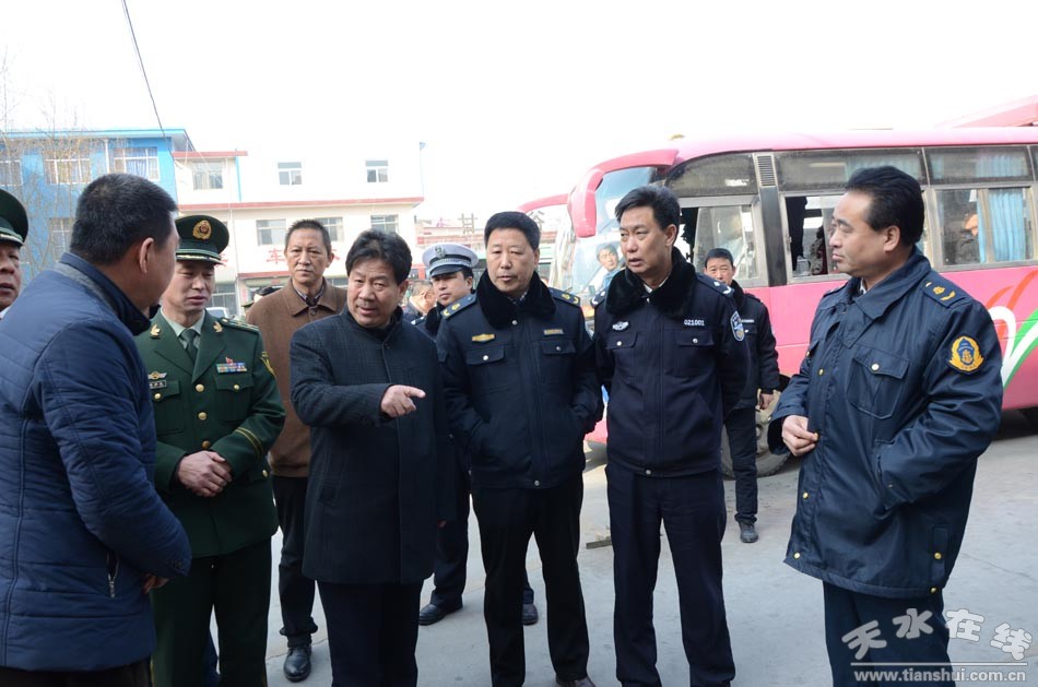 張明泰先后來(lái)到甘谷縣汽車站、客運(yùn)檢測(cè)站、交警執(zhí)勤點(diǎn),詳細(xì)察看了長(zhǎng)途客運(yùn)中心車輛、人員安全檢查情況。在汽車站檢查時(shí)張明泰指出,交通道路安全事關(guān)人民群眾切身利益,各級(jí)各部門要在前期工作的基礎(chǔ)上,再檢查、再部署、再安排,加強(qiáng)宣傳引導(dǎo),提升服務(wù)保障水平,確保人民群眾節(jié)日安全出行、便捷出行、溫馨出行。要進(jìn)一步加強(qiáng)對(duì)節(jié)日期間工作的組織領(lǐng)導(dǎo),嚴(yán)格執(zhí)行領(lǐng)導(dǎo)帶班制度;要做好災(zāi)害性天氣應(yīng)對(duì)準(zhǔn)備,切實(shí)維護(hù)好良好的交通運(yùn)輸秩序;要及時(shí)準(zhǔn)確發(fā)布交通信息,引導(dǎo)旅客有序出行;要加強(qiáng)各方協(xié)調(diào)配合,形成抓好春節(jié)期間工作的強(qiáng)大合力;要強(qiáng)化監(jiān)管和隱患排查,確保安全措施落實(shí)到位。