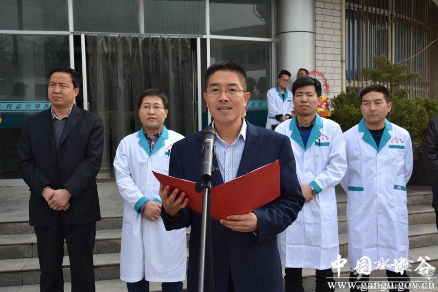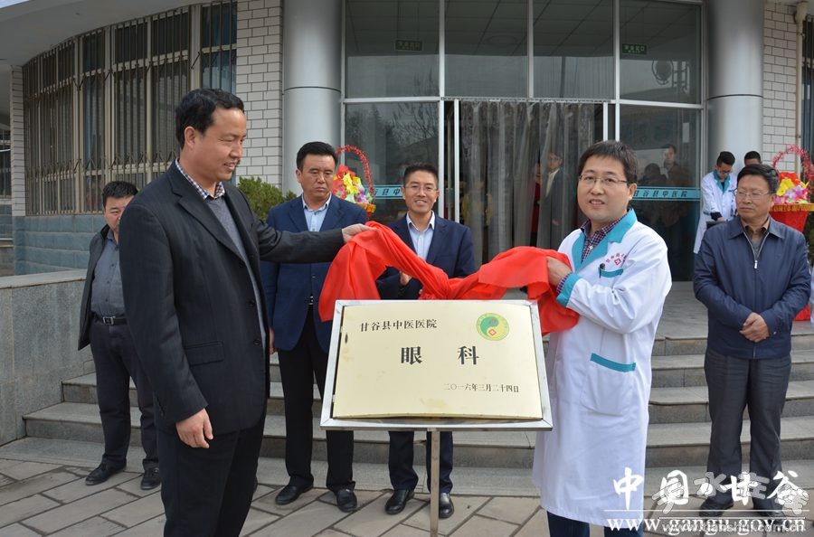 3月24日,甘谷縣中醫(yī)院眼科掛牌成立。甘谷縣委常委、宣傳部長張慶元,縣人大常委會副主任韓金鼎,副縣長牛武軍,縣政協(xié)副主席田小龍,西安市第四醫(yī)院眼科主任醫(yī)師孫文濤出席揭牌儀式,縣衛(wèi)計局、縣中醫(yī)院負責(zé)人及中醫(yī)院部分干部職工參加儀式。