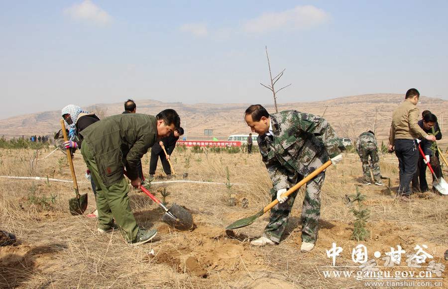 “今年義務(wù)植樹(shù)活動(dòng)主題是‘生態(tài)文明,綠色發(fā)展’,義務(wù)植樹(shù)活動(dòng)的基地選擇在甘谷縣人民政府與甘肅省小隴山林業(yè)實(shí)驗(yàn)局簽約的合作造林項(xiàng)目——新興鎮(zhèn)雒家村北山造林工程綠化點(diǎn),小隴山林業(yè)實(shí)驗(yàn)局李子園林場(chǎng)場(chǎng)長(zhǎng)帶領(lǐng)技術(shù)員現(xiàn)場(chǎng)指導(dǎo)了云杉、油松等綠化苗木栽植技術(shù)!备使瓤h綠化辦負(fù)責(zé)人介紹說(shuō)。