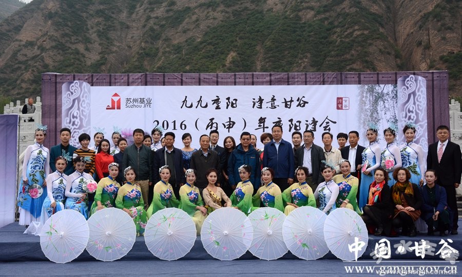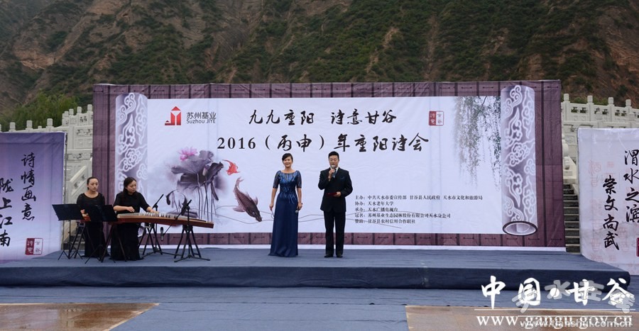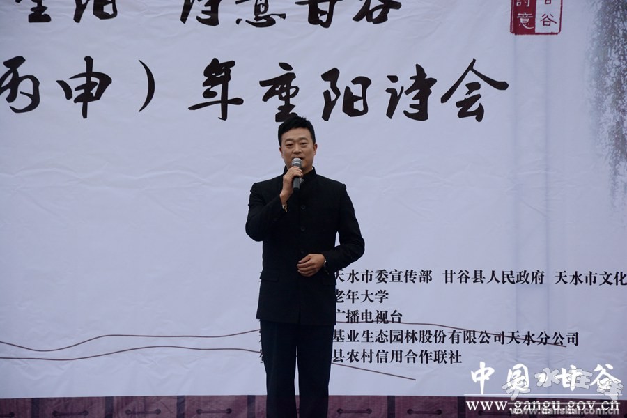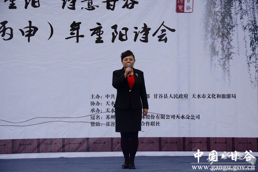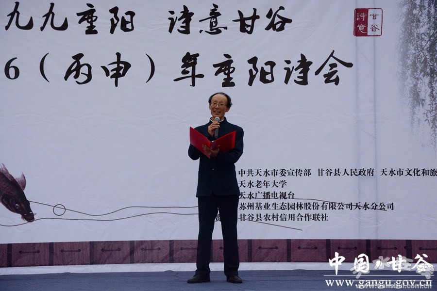 10月9日,重陽佳節(jié)。由市委宣傳部、甘谷縣人民政府、市文化和旅游局主辦,市電視臺承辦,天水老年大學(xué)、天水市江蘇商會(huì)甘谷分會(huì)協(xié)辦的“九九重陽·詩意甘谷”2016(丙申)年甘谷重陽詩會(huì)在大像山公園隆重舉行。市委宣傳部副部長趙子洲,市人大常委會(huì)原副主任杜明富,市政協(xié)原副主席王欽錫,市文旅局副局長李曉敏,市電視臺副臺長姚祎,縣委書記賈忠慧,縣委常委、宣傳部長張慶元,縣人大常委會(huì)副主任頡明軍,縣政協(xié)副主席董成斌,市縣離退休老干部與廣大詩歌愛好者、現(xiàn)場群眾一同聆聽詩歌朗誦、觀看文藝演出。