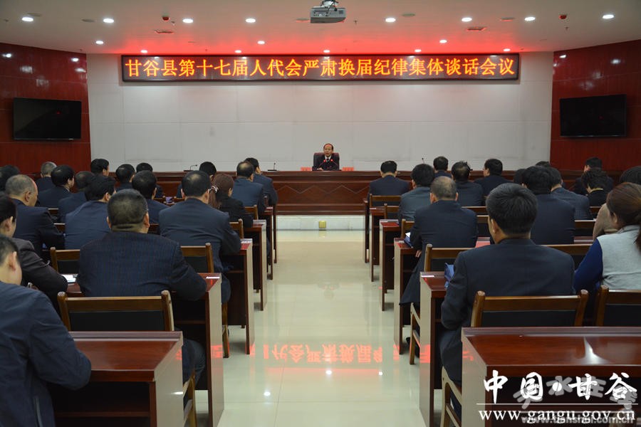10月21日,甘谷縣第十七屆人民代表大會第一次會議召開嚴(yán)肅換屆紀(jì)律集體談話會議?h委書記賈忠慧出席會議并講話?h人大常委會組成人員全體候選人,縣人民政府縣長、副縣長候選人,縣人民法院院長,檢察院檢察長,出席天水市第七屆人民代表大會代表候選人,縣十七屆人大法制、財政經(jīng)濟(jì)委員會組成人員候選人參加會議。