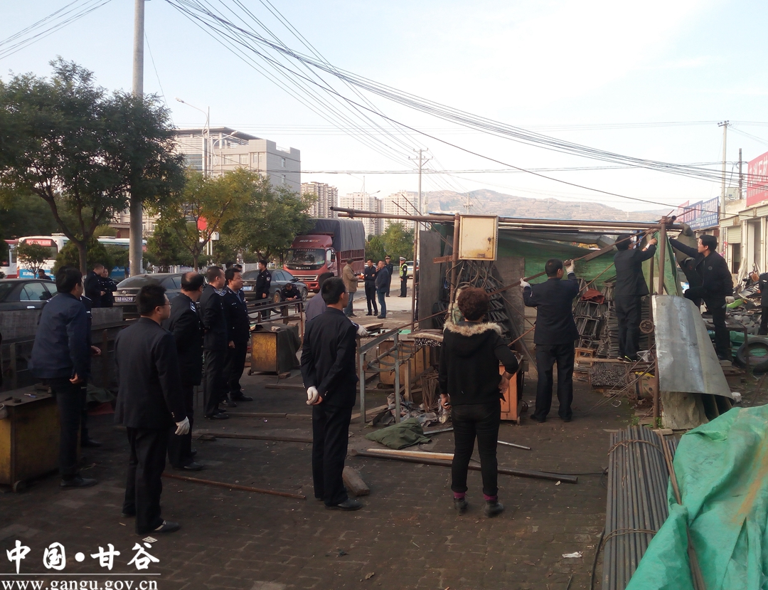 為進一步規(guī)范城區(qū)秩序,優(yōu)化市容環(huán)境。10月20日,甘谷縣組織住建、公安、交警、運管、市建、工商、食藥監(jiān)及綜合執(zhí)法等部門,組成聯(lián)合執(zhí)法組,重拳出擊,對冀城路沿線無規(guī)劃、無許可亂搭亂建行為進行了集中整治,依法拆除了各類違法建筑物。